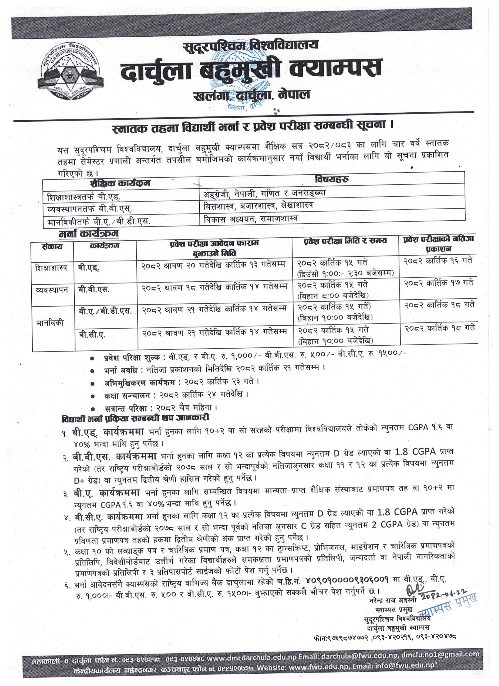 स्नातक तह अन्तर्गत विभिन्न संकायका प्रवेश परीक्षा तथा नयाँ भर्ना सम्बन्धी संशोधित सूचना ।