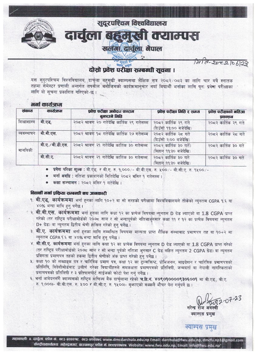 २०८२ कार्तिक १५ गते लिइएकाे प्रवेश परीक्षाकाे नतिजा तथा भर्ना सम्बन्धमा ।