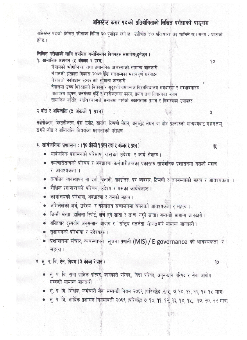 Syllabus (असिस्टेण्ट करार पद)